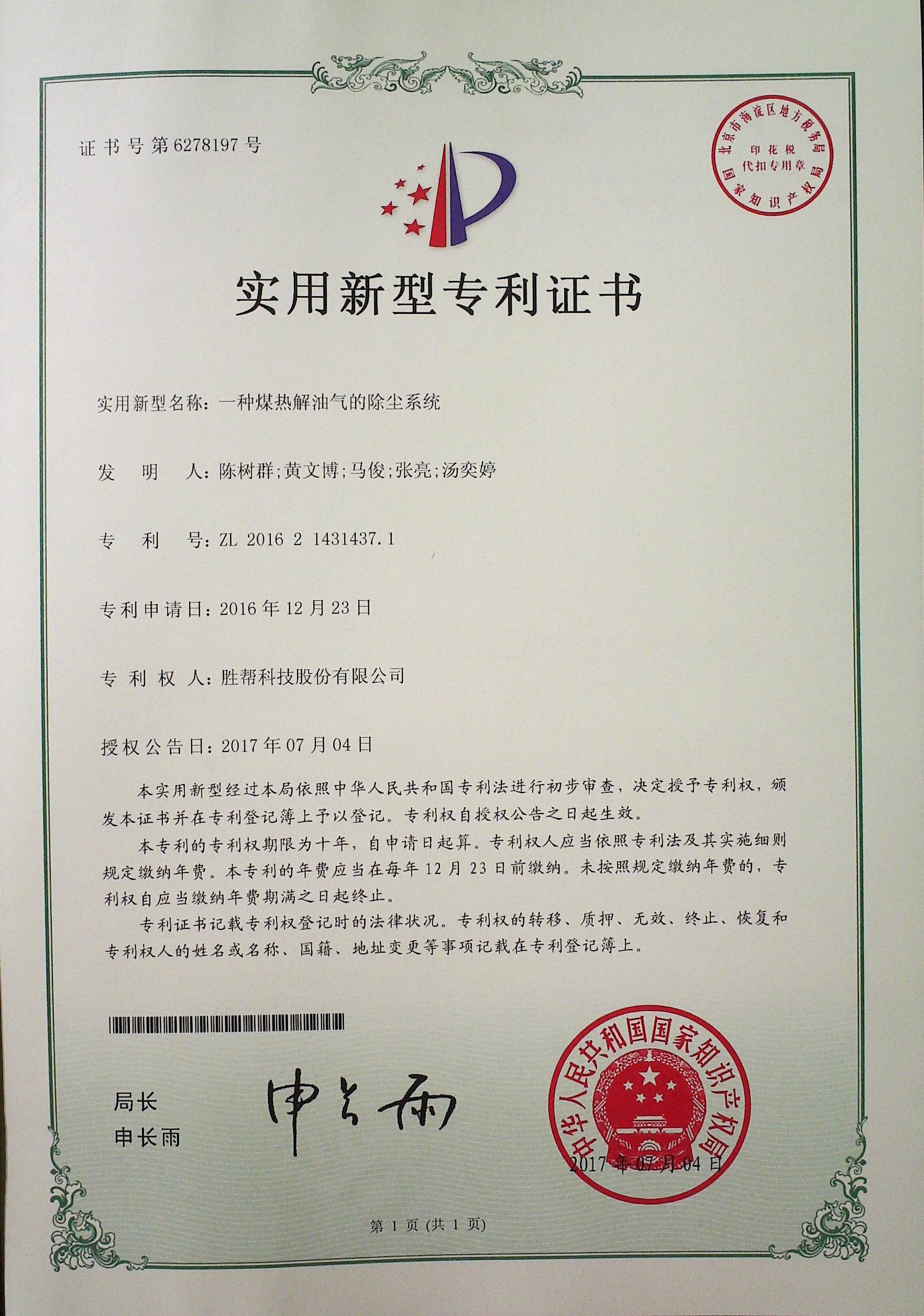 点点体育官方下载煤热解油气的除尘系统